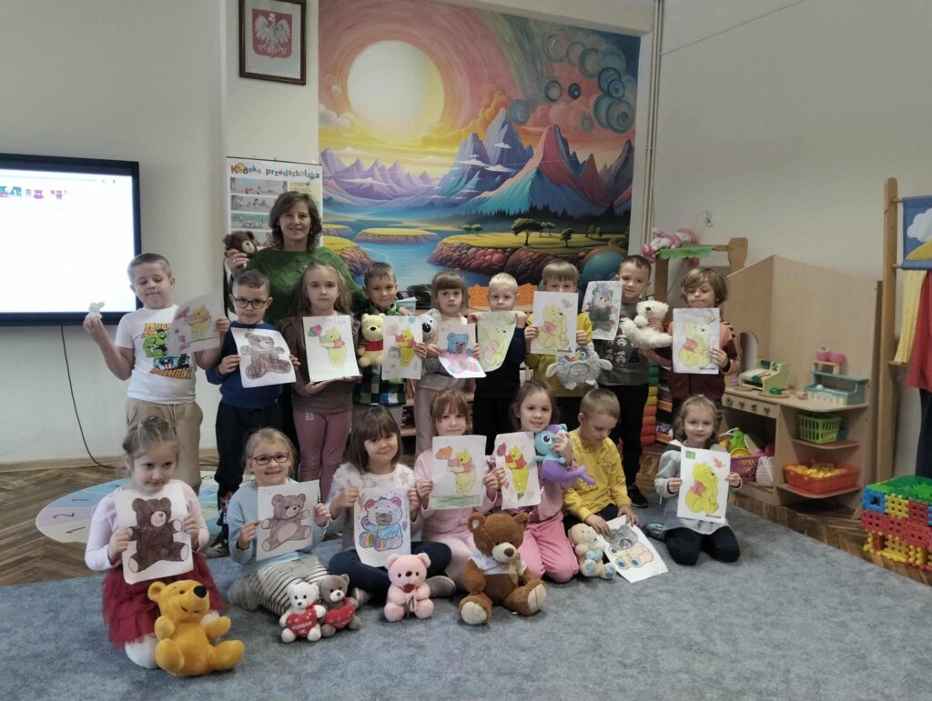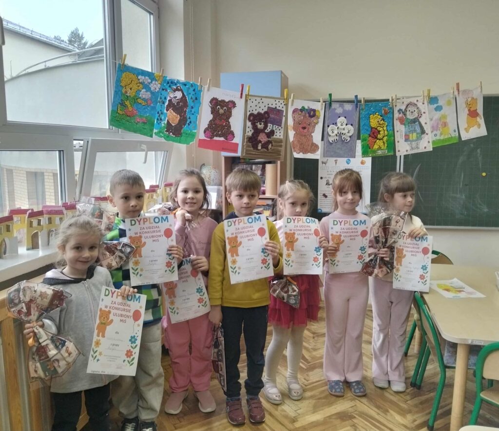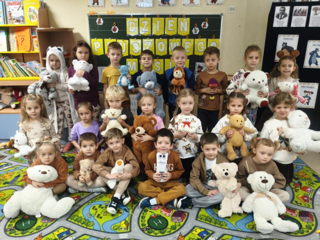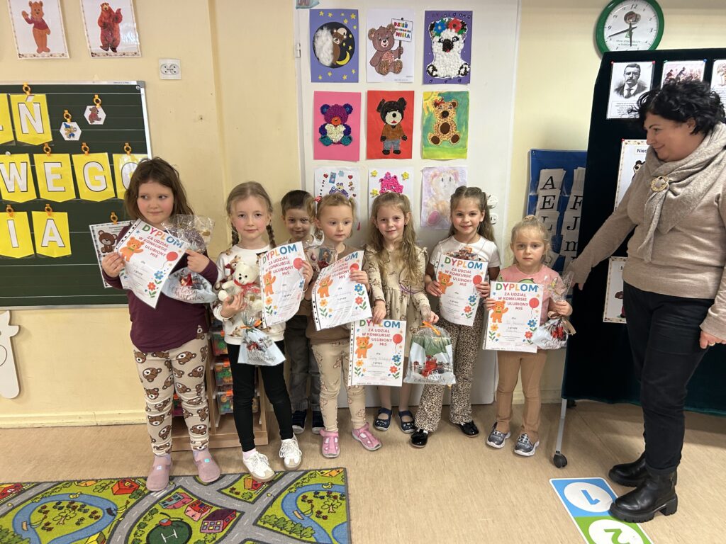 25 listopada w naszym przedszkolu świętowaliśmy Dzień Pluszowego Misia. Z tej okazji zorganizowano konkurs plastyczny pt. „Ulubiony Miś”, w którym dzieci wykazały się ogromną kreatywnością i pomysłowością. Tego dnia odbyło się uroczyste rozstrzygnięcie konkursu oraz wręczenie nagród. Przedszkolaki celebrowały święto swoich ukochanych pluszaków wesołymi zabawami, tańcami i wspólnymi aktywnościami, które sprawiły im wiele radości.