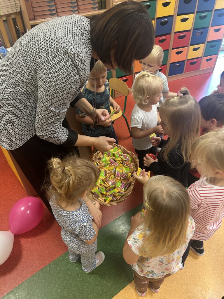 Tego dnia odwiedziła nas także Pani Dyrektor Małgorzata Dąbrowska, która złożyła dzieciom serdeczne życzenia, a także z radością uczestniczyła w przygotowanych aktywnościach. Jej obecność była dla przedszkolaków dużą niespodzianką i sprawiła im wiele radości.