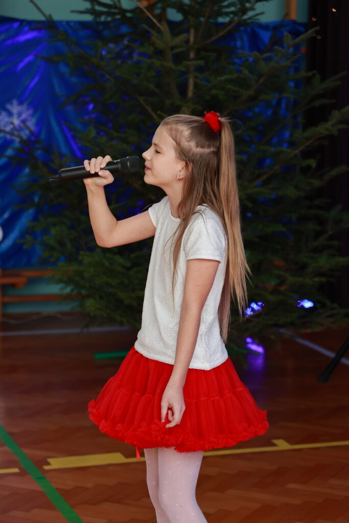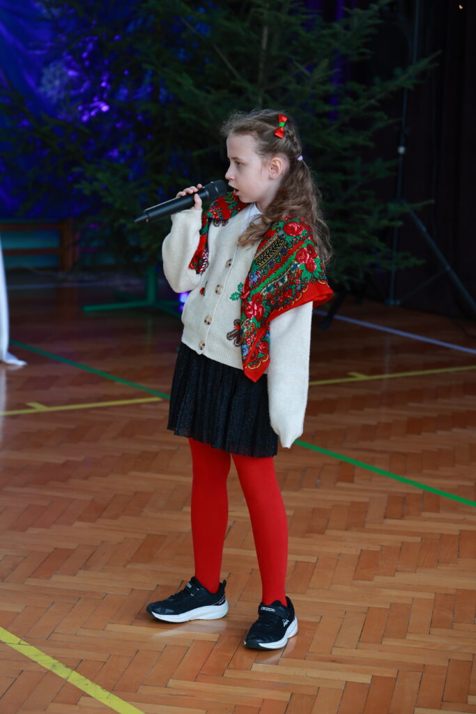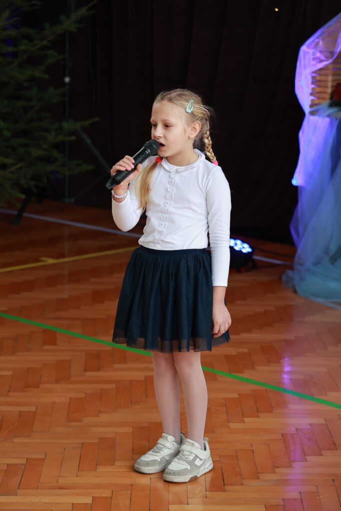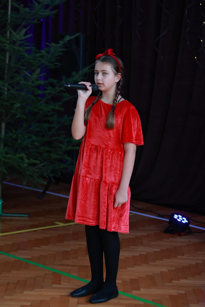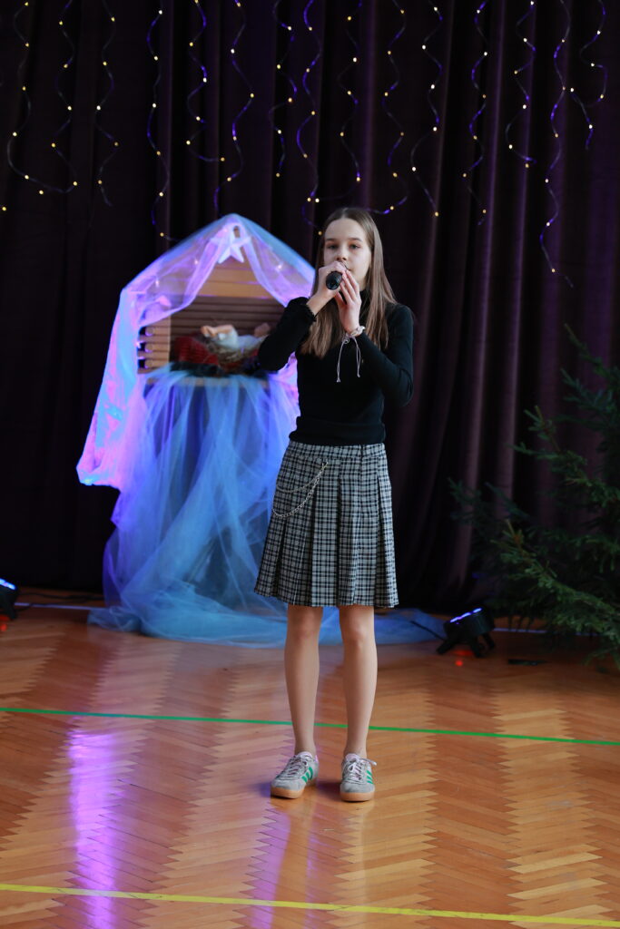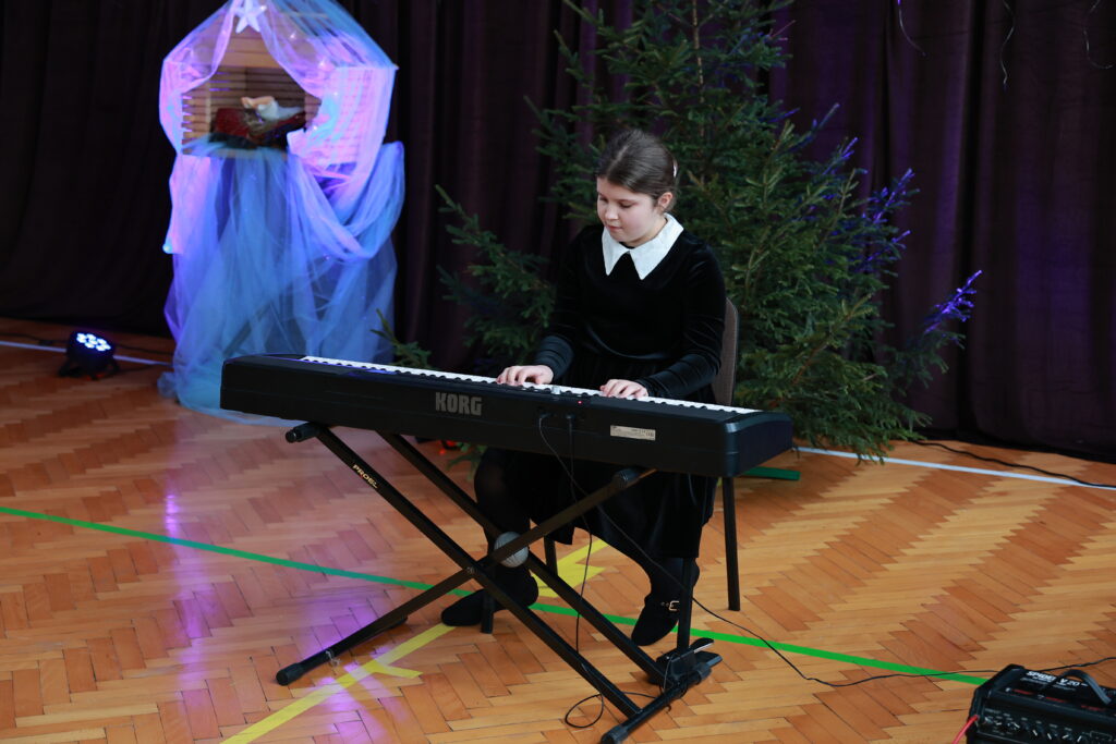 10 grudnia w naszej szkole odbył się finał konkursu kolęd i pastorałek „Zaśpiewajmy i zagrajmy Dzieciątku”. W świąteczny nastrój wprowadził wszystkich prowadzący wydarzenie — Pan Łukasz Gronostaj, nauczyciel muzyki, który zadbał o ciepłą atmosferę i płynny przebieg koncertu.