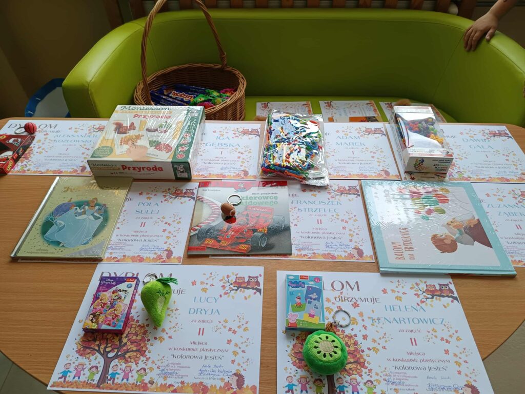 22 października odbyło się rozstrzygnięcie organizowanego przez świetlicę szkolną konkursu pt.: "Kolorowa Jesień". Brali w nim udział uczniowie klas 0 oraz dzieci z grupy pięciolatków. Jury w składzie nauczycieli świetlicy wybrało zwycięzców. Wręczenie nagród odbyło się z udziałem Pani Dyrektor, nauczycieli oraz dzieci. Konkursowe prace zostały wyeksponowane w holu przy przedszkolu.