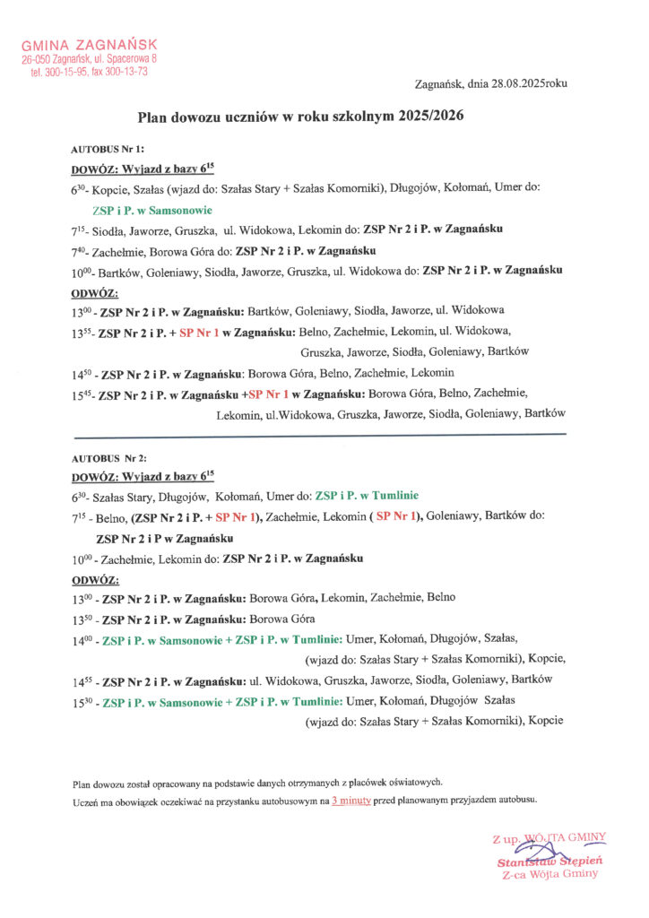 Plan dowozu uczniów w roku szkolnym 2025/26