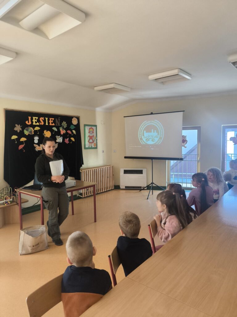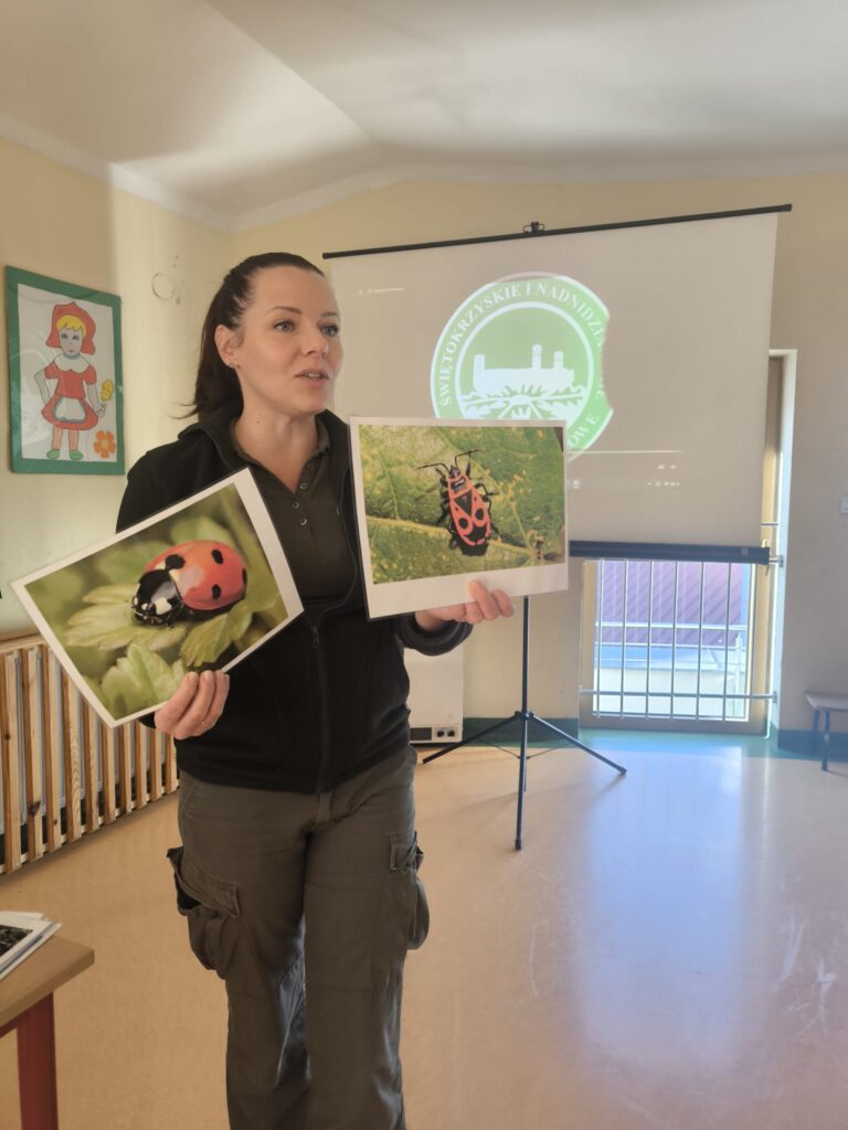 W szkolnej świetlicy odbyło się wyjątkowe spotkanie, na które została zaproszona pani Paulina Pytlas – główny specjalista ds. edukacji ekologicznej w Zespole Świętokrzyskich i Nadwiślańskich Parków Krajobrazowych. Tematem spotkania był „Niesamowity świat owadów” jako najliczniejszej grupy zwierząt na Ziemi. Pani Paulina w sposób niezwykle inspirujący zaprezentowała główne gatunki owadów za pomocą ilustracji oraz prezentacji multimedialnej.