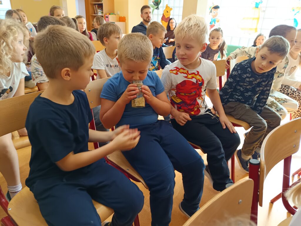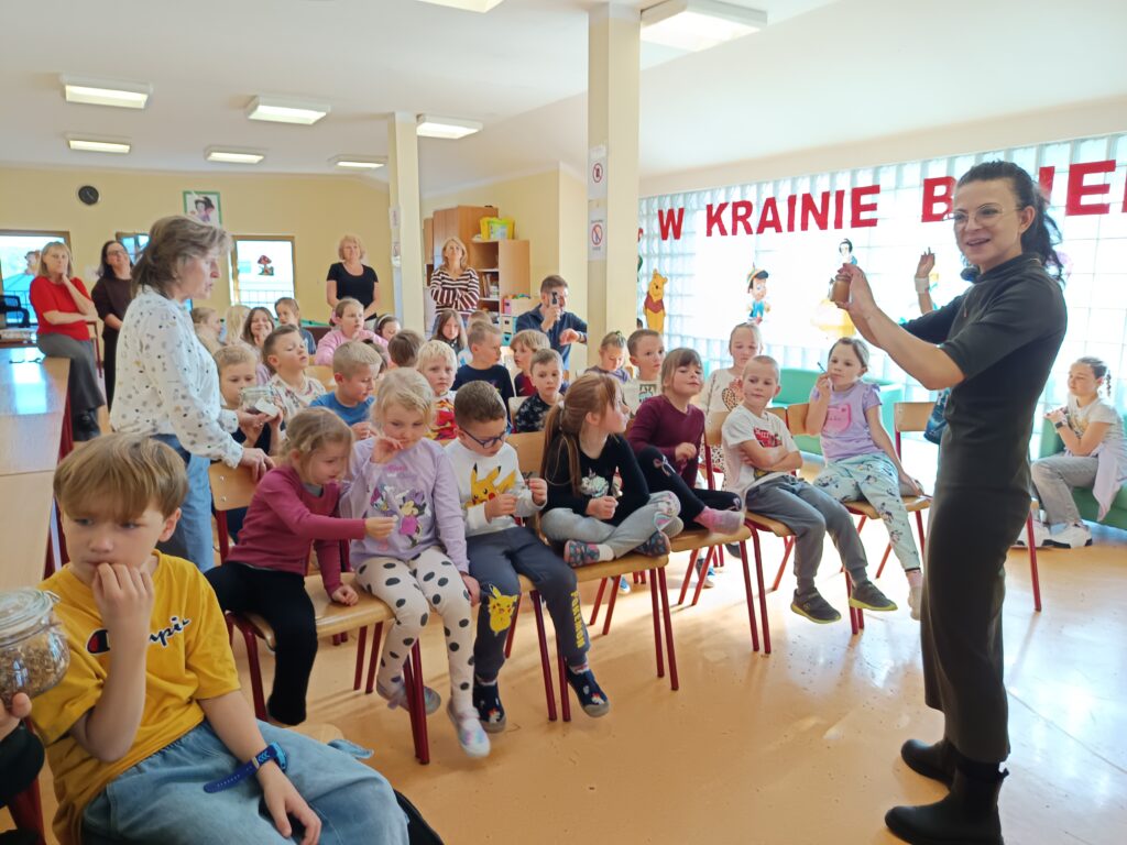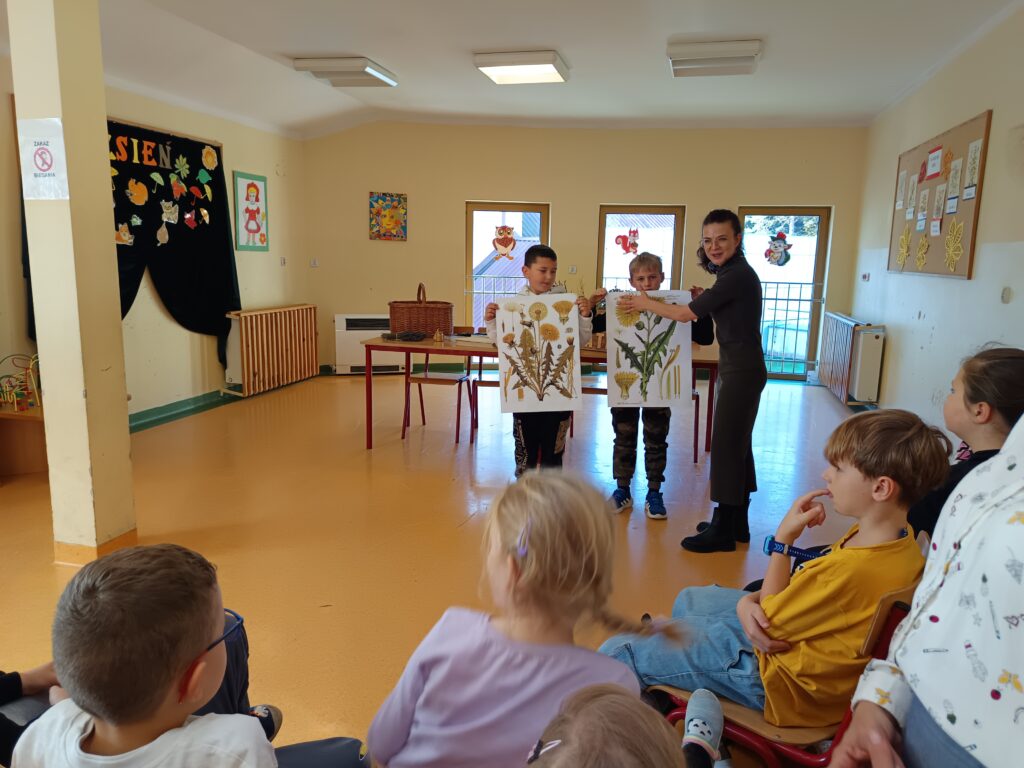 Dzieci mogły nie tylko posłuchać ciekawych historii, ale także dotknąć i powąchać różne zioła, poznając ich zapachy i fakturę. Pani Ewa zaprezentowała także ciekawe  książki i opowiadała o miłości do natury, która inspiruje jej codzienną pracę.