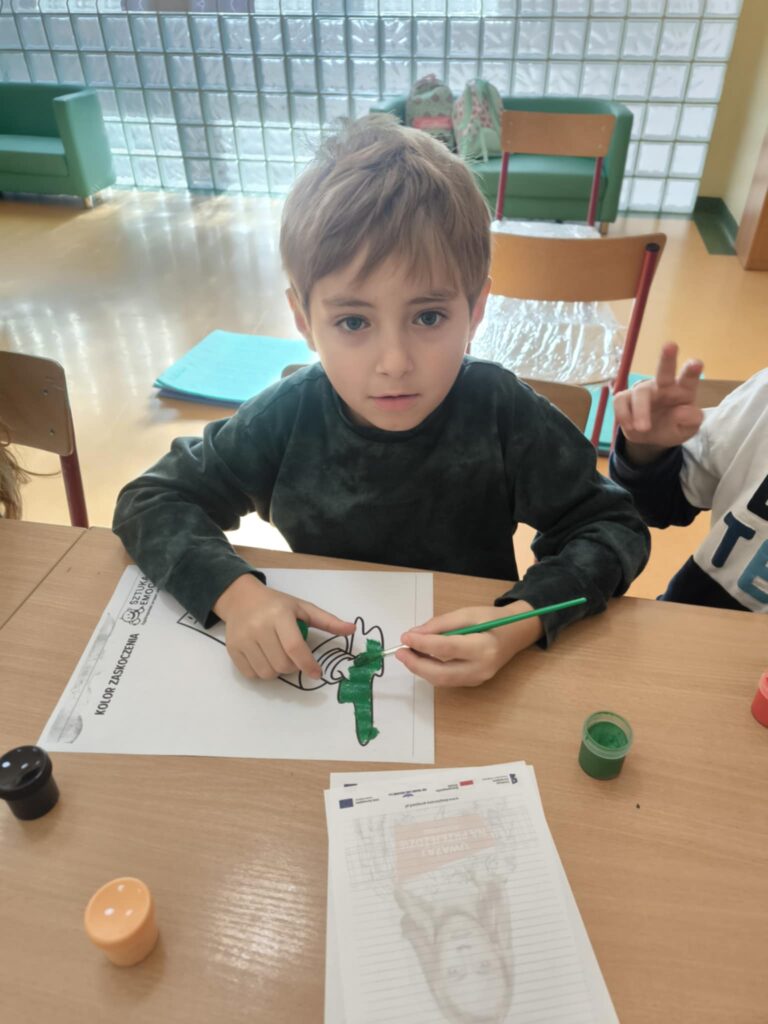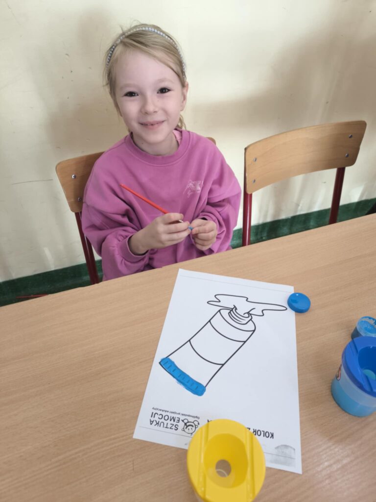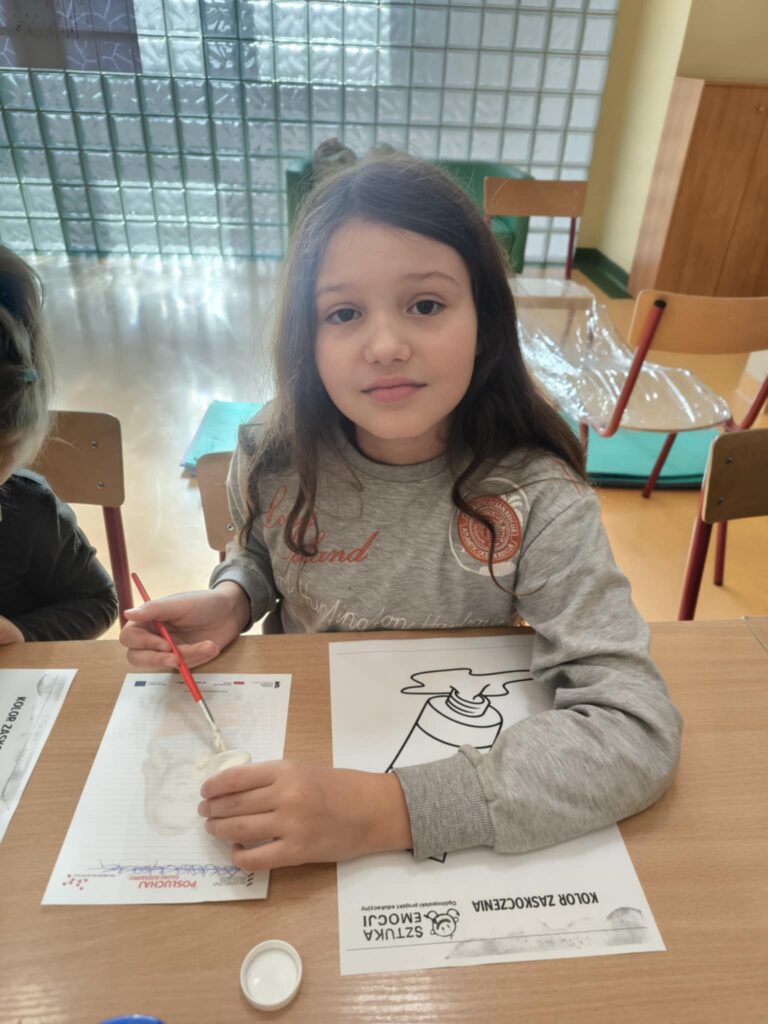 30 października w świetlicy szkolnej odbyło się pierwsze spotkanie o emocjach w ramach ogólnopolskiego projektu "Sztuka emocji". Wzięli w nim udział uczniowie klas Ib, IIb i IIIb. Dzieci rozwiązywały krzyżówkę tematyczną, opowiadały o pierwszej poznanej emocji - zaskoczeniu, brały udział w zabawie ruchowej oraz śpiewały piosenkę o emocjach. Zwieńczeniem zajęć było malowanie farbami "Koloru zaskoczenia".