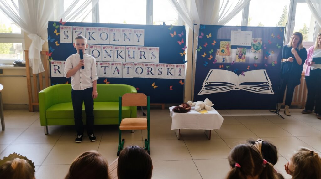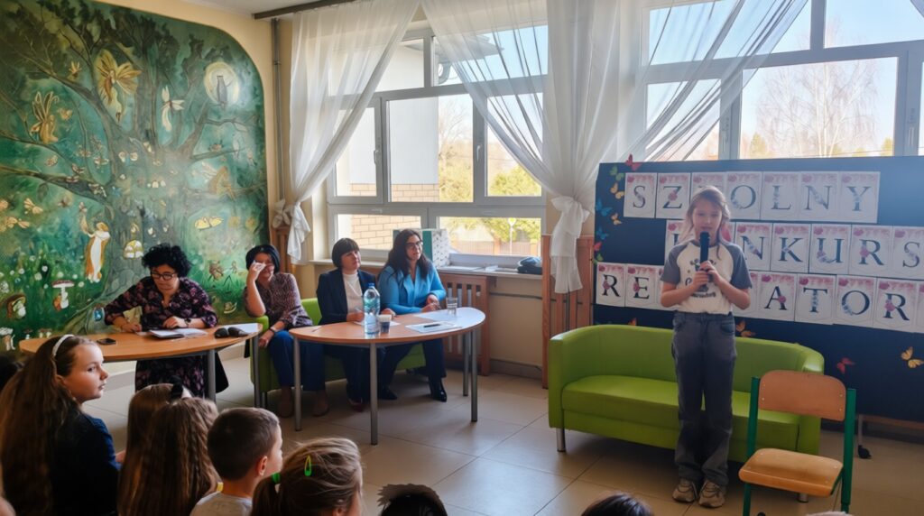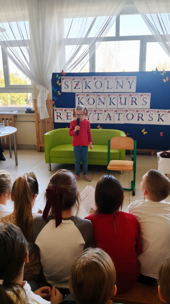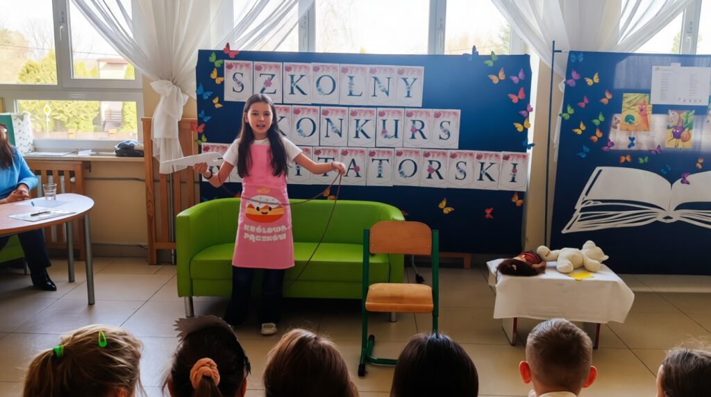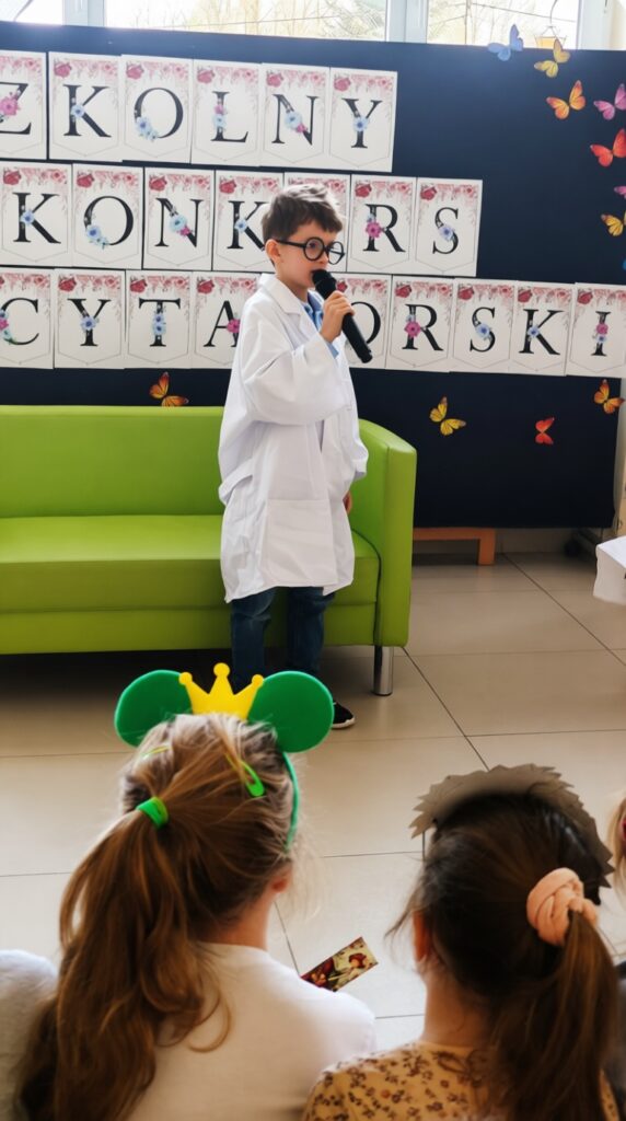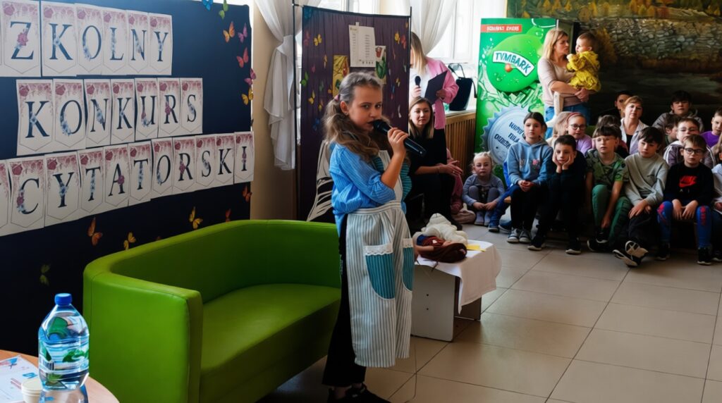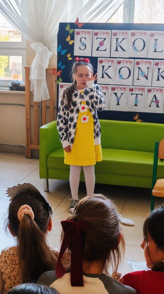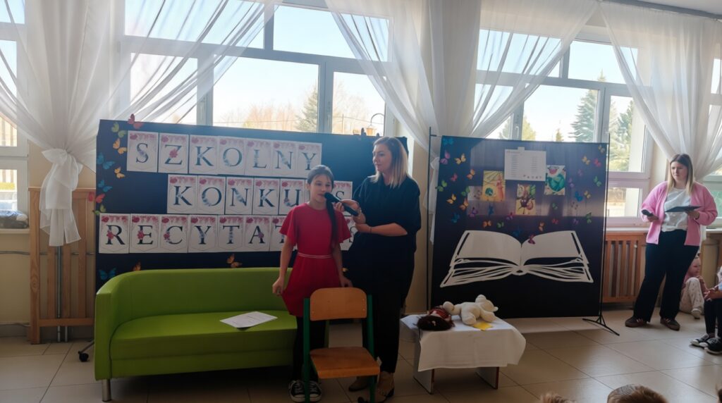 W ramach obchodów Tygodnia Kultury Języka Polskiego w naszej szkole odbył się konkurs recytatorski dla uczniów klas 1–3. Mali artyści zaprezentowali znane i bardzo lubiane wiersze Jana Brzechwy. Na szkolnej scenie można było usłyszeć zabawne, pełne humoru utwory, które od lat bawią kolejne pokolenia czytelników. Młodzi recytatorzy wykazali się dużą odwagą, świetną pamięcią oraz interpretacją tekstów. Każdy występ został nagrodzony gromkimi brawami publiczności.